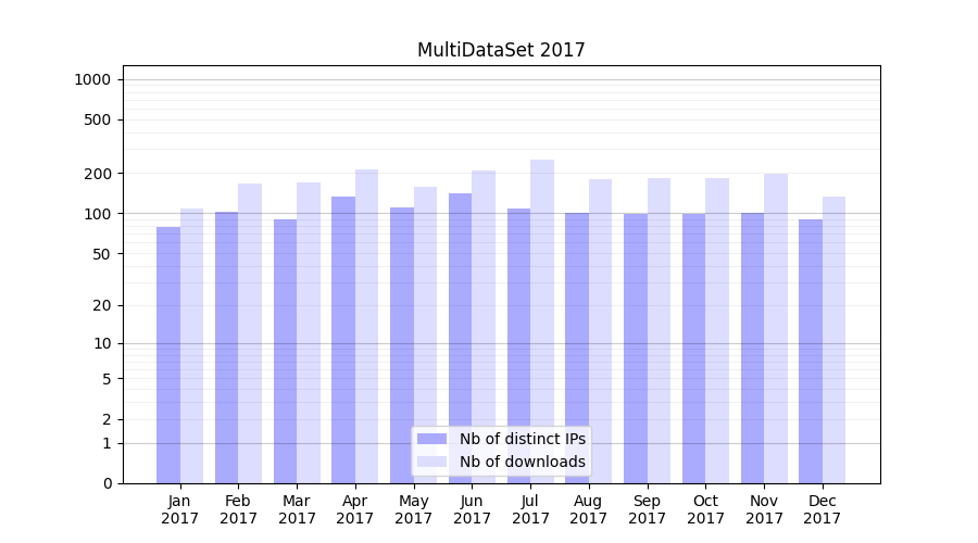 | Month | Nb of distinct IPs | Nb of downloads |