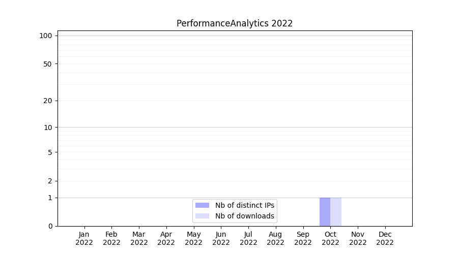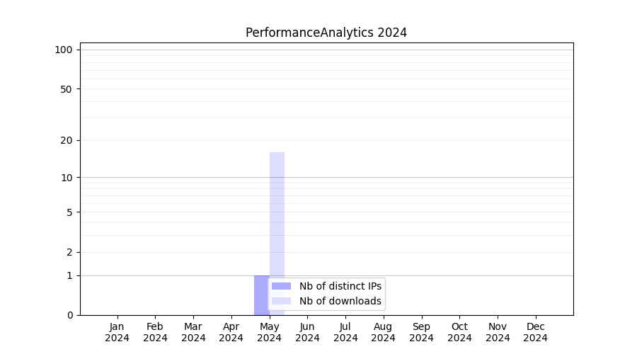 Number of downloads for software package PerformanceAnalytics, year by year, from 2025 back to 2014 (years with no downloads are omitted):