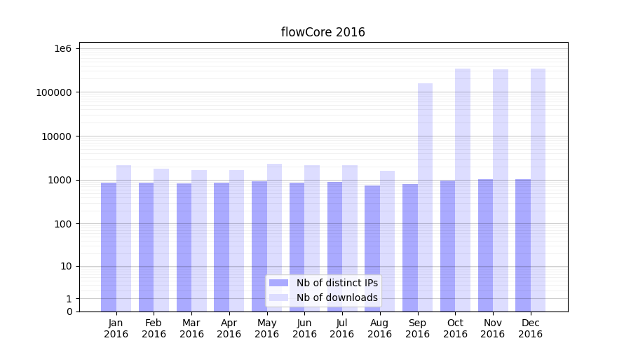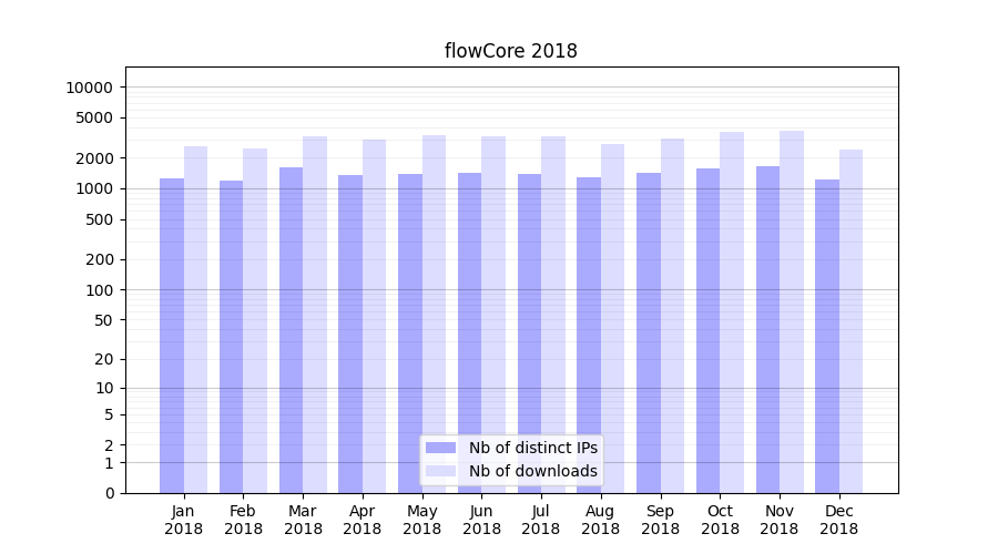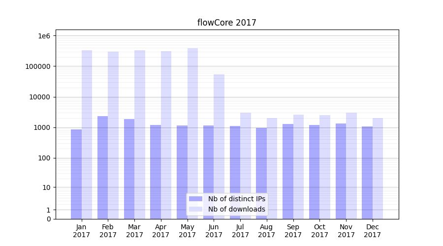 | Month | Nb of distinct IPs | Nb of downloads |