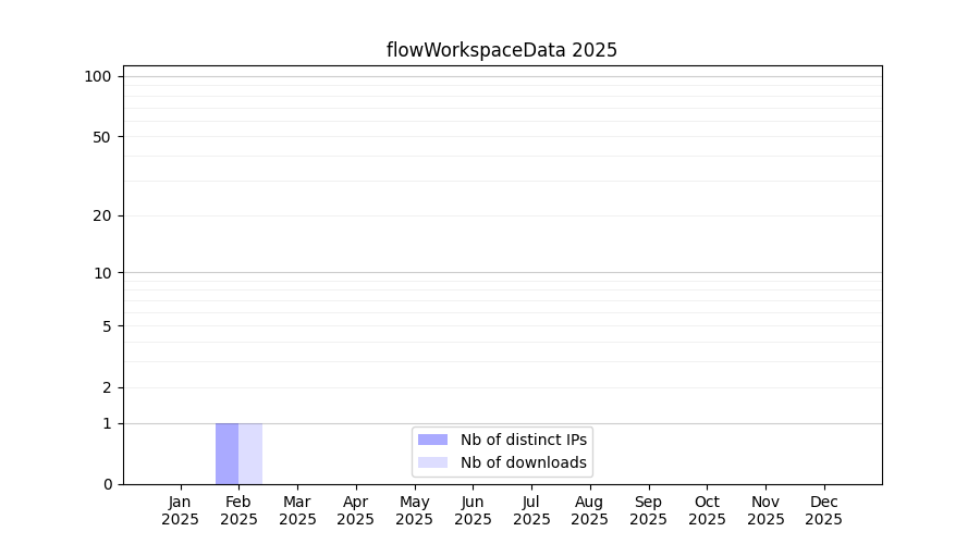 Number of downloads for software package flowWorkspaceData, year by year, from 2025 back to 2014 (years with no downloads are omitted):