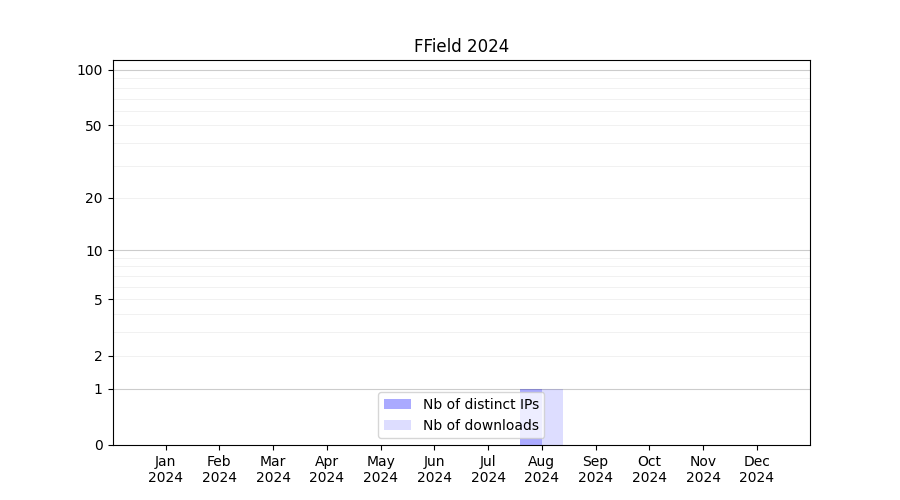 Number of downloads for annotation package FField, year by year, from 2025 back to 2014 (years with no downloads are omitted):
