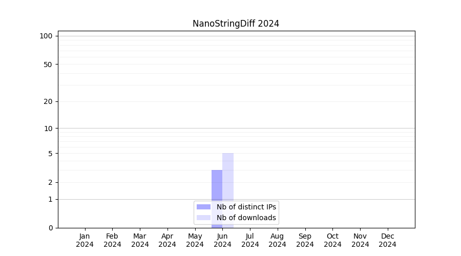 Number of downloads for annotation package NanoStringDiff, year by year, from 2025 back to 2014 (years with no downloads are omitted):