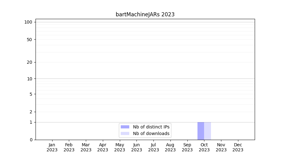 Number of downloads for annotation package bartMachineJARs, year by year, from 2025 back to 2014 (years with no downloads are omitted):