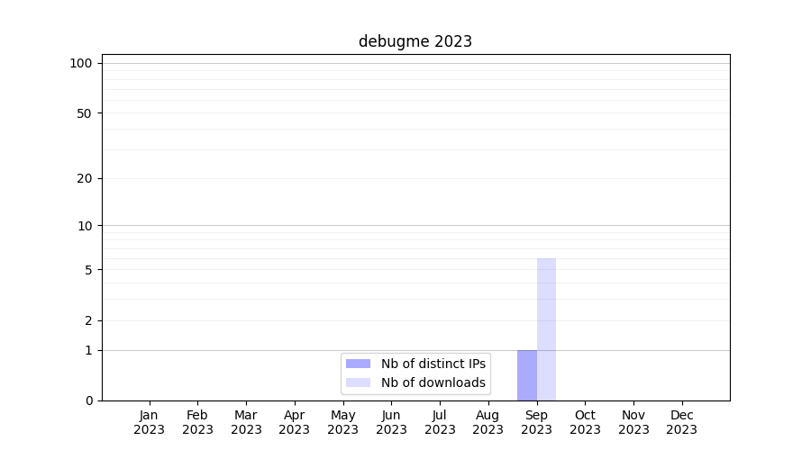 Number of downloads for annotation package debugme, year by year, from 2025 back to 2014 (years with no downloads are omitted):