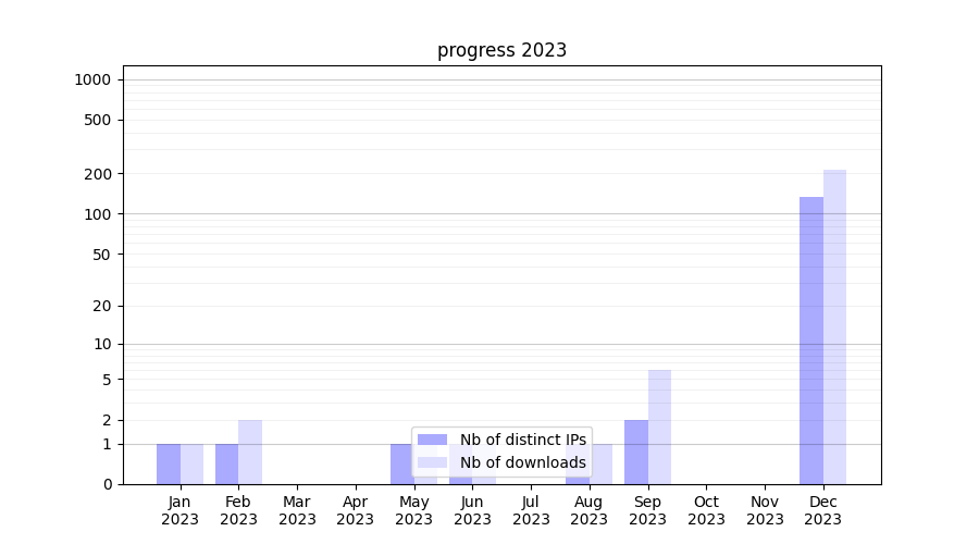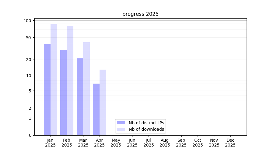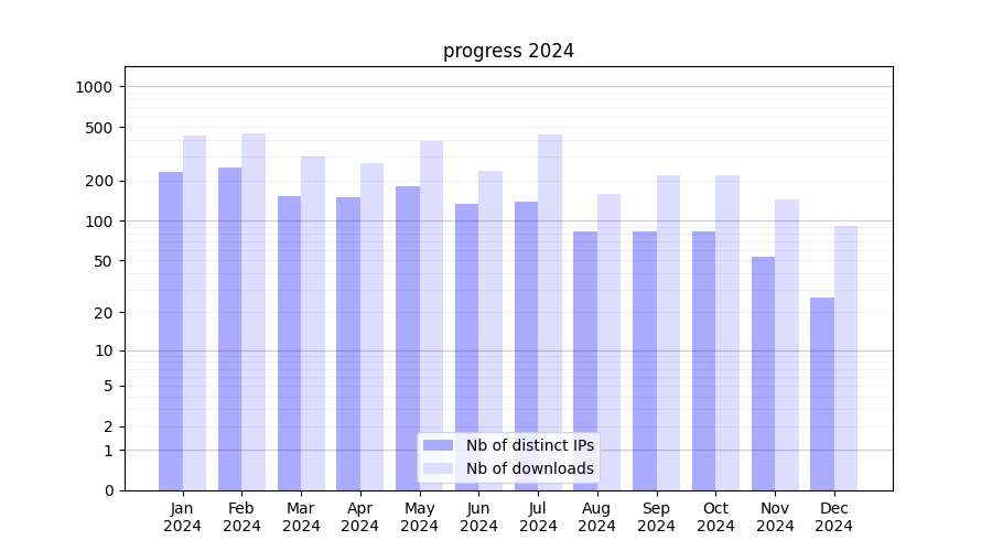Number of downloads for annotation package progress, year by year, from 2025 back to 2014 (years with no downloads are omitted):