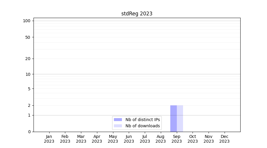 Number of downloads for annotation package stdReg, year by year, from 2025 back to 2014 (years with no downloads are omitted):