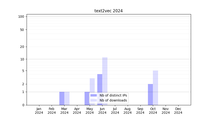 Number of downloads for annotation package text2vec, year by year, from 2025 back to 2014 (years with no downloads are omitted):