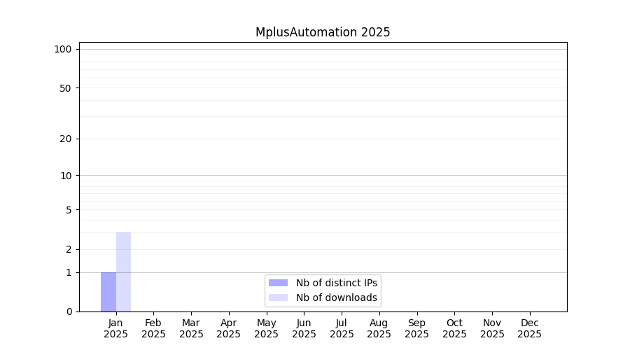 Number of downloads for experiment package MplusAutomation, year by year, from 2025 back to 2014 (years with no downloads are omitted):