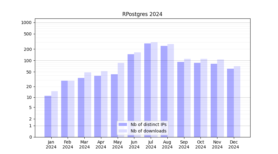 Download stats for experiment package RPostgres
