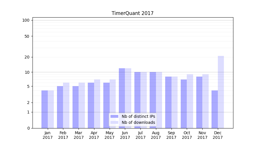 | Month | Nb of distinct IPs | Nb of downloads |