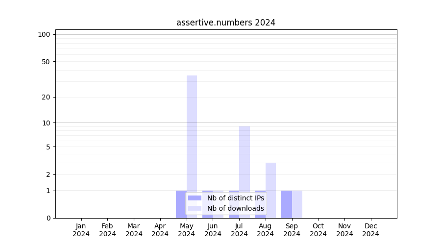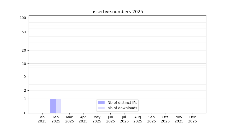 Number of downloads for experiment package assertive.numbers, year by year, from 2025 back to 2014 (years with no downloads are omitted):
