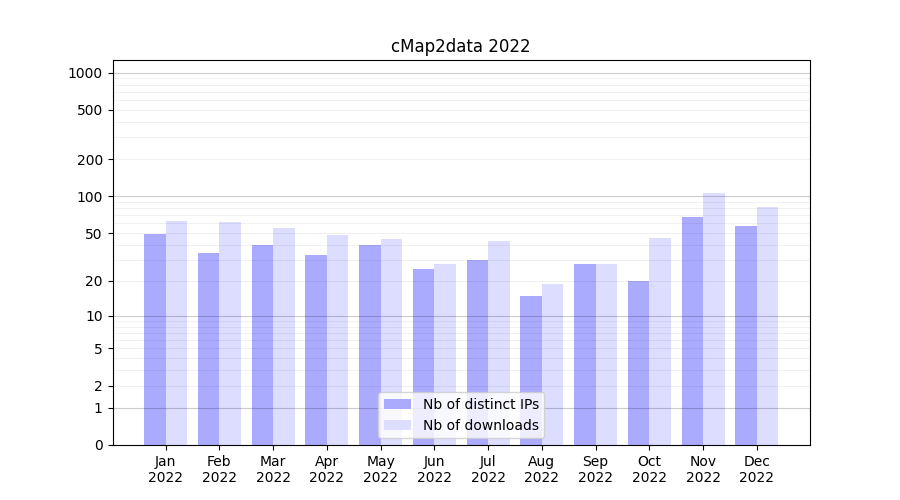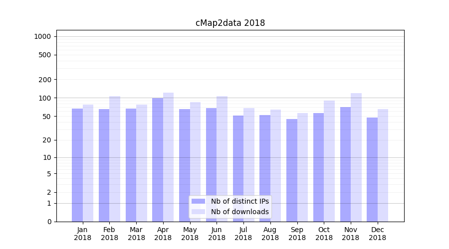 | Month | Nb of distinct IPs | Nb of downloads |
