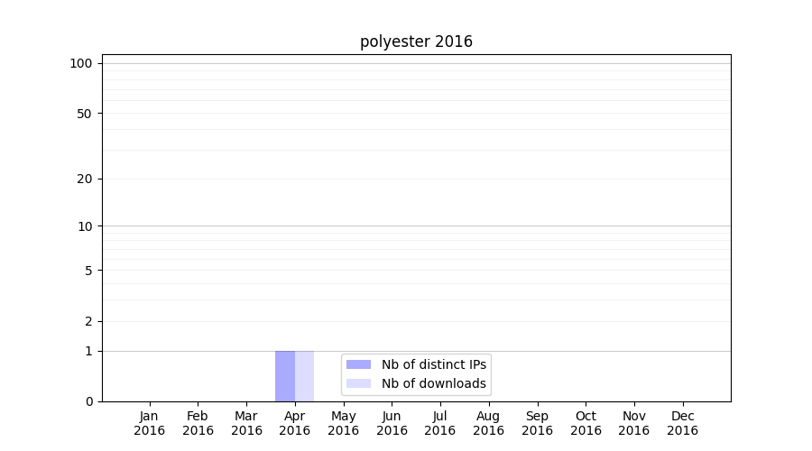 Number of downloads for experiment package polyester, year by year, from 2025 back to 2014 (years with no downloads are omitted):