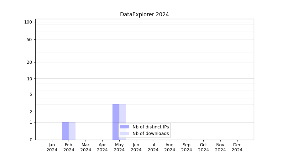 Number of downloads for workflow package DataExplorer, year by year, from 2025 back to 2015 (years with no downloads are omitted):