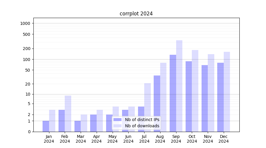| Month | Nb of distinct IPs | Nb of downloads |