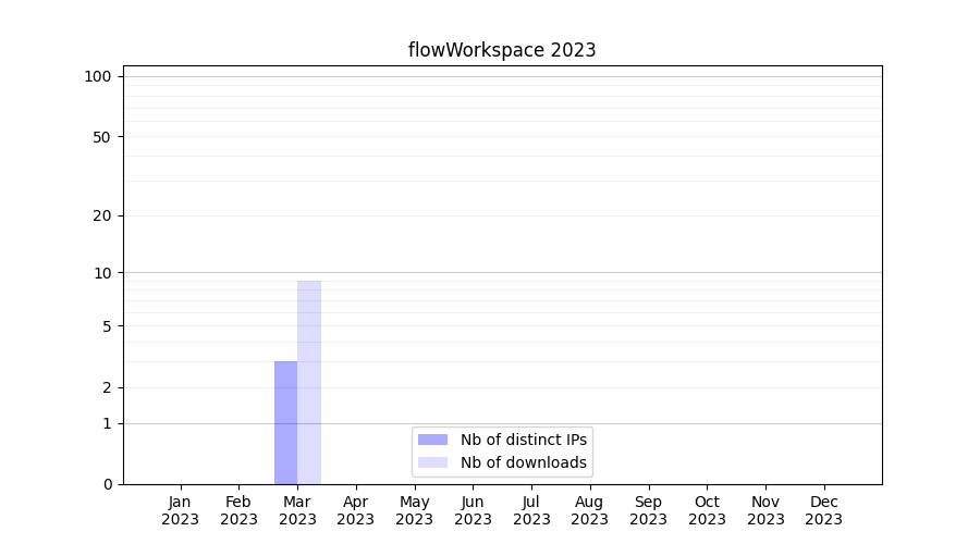 Number of downloads for workflow package flowWorkspace, year by year, from 2025 back to 2015 (years with no downloads are omitted):