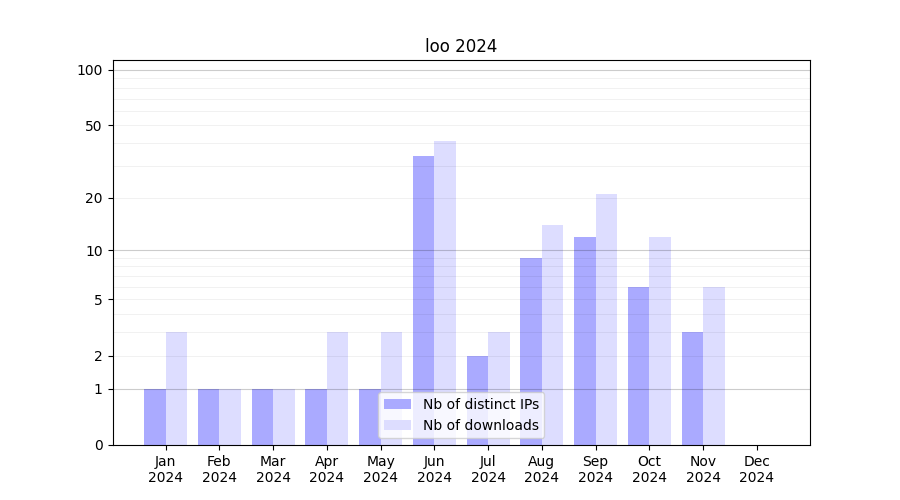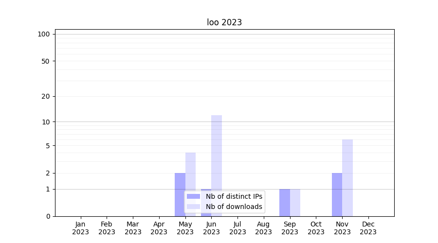 Number of downloads for workflow package loo, year by year, from 2025 back to 2015 (years with no downloads are omitted):
