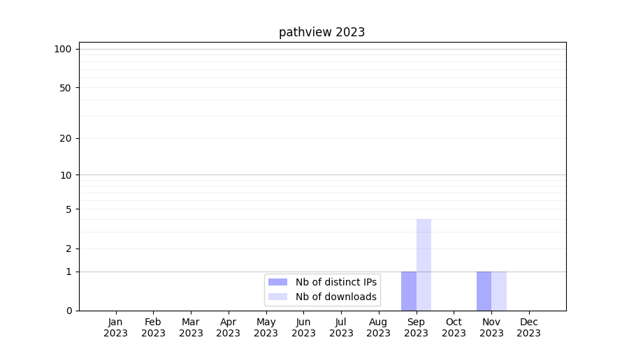 Number of downloads for workflow package pathview, year by year, from 2025 back to 2015 (years with no downloads are omitted):