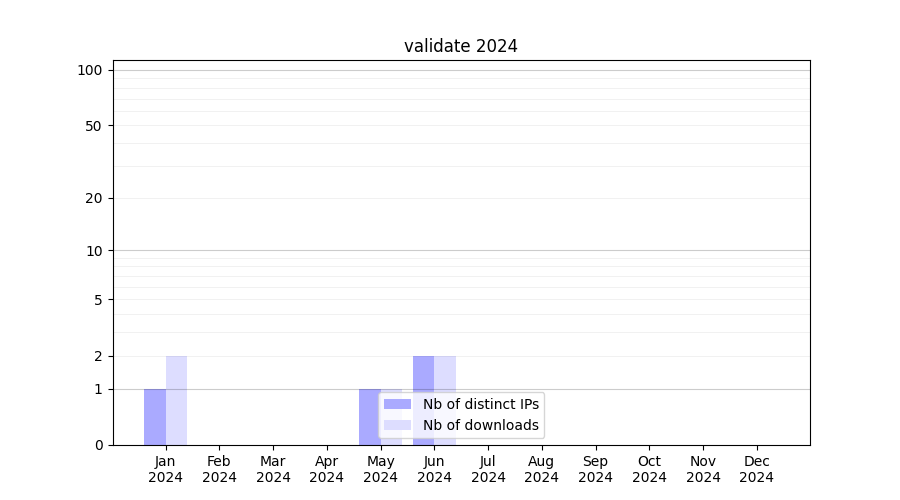 Number of downloads for workflow package validate, year by year, from 2025 back to 2015 (years with no downloads are omitted):
