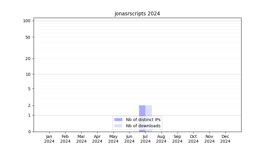 Number of downloads for annotation package jonasrscripts, year by year, from 2025 back to 2014 (years with no downloads are omitted):