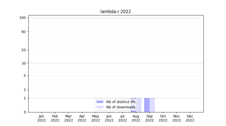 Number of downloads for annotation package lambda.r, year by year, from 2025 back to 2014 (years with no downloads are omitted):