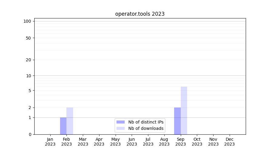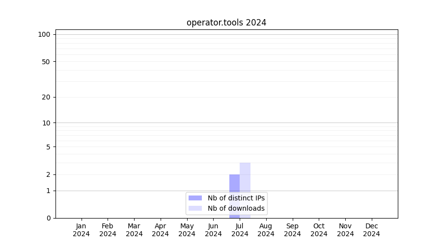 Number of downloads for annotation package operator.tools, year by year, from 2025 back to 2014 (years with no downloads are omitted):