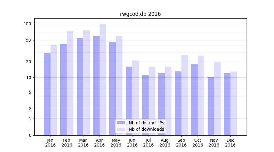 | Month | Nb of distinct IPs | Nb of downloads |