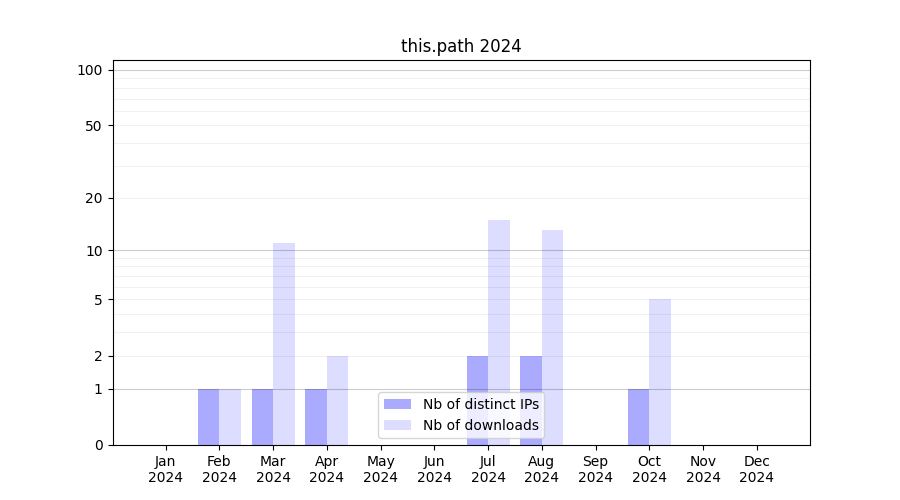 Number of downloads for annotation package this.path, year by year, from 2025 back to 2014 (years with no downloads are omitted):