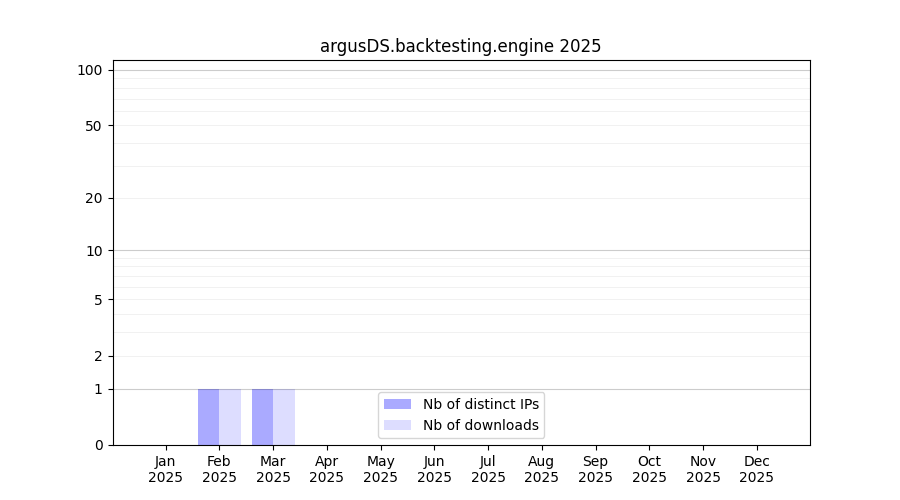 Number of downloads for experiment package argusDS.backtesting.engine, year by year, from 2025 back to 2014 (years with no downloads are omitted):