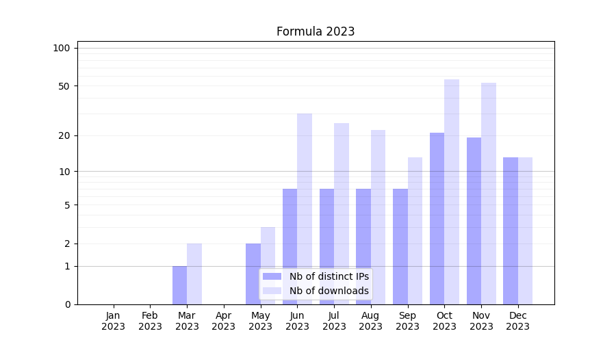 | Month | Nb of distinct IPs | Nb of downloads |